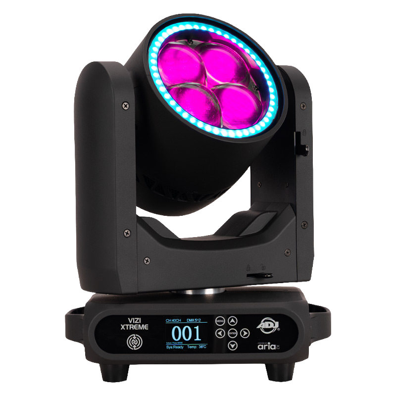 The VIZI XTREME redefines compact performance with its high-speed movement, vivid color output, and exceptional versatility. Powered by four 60W RGBL primary LED’s and a ring of forty-eight 0.5W RGBW LED’s, it produces a stunningly bright beam with smooth color blending and a color temperature range of 2700K–10,000K. Each primary LED offers individual pixel control, while the ring features six independently controlled zones for creative eye candy effects.